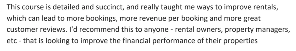 Lifetime Access. Revisit the lessons any time you launch a new rental or want to refresh your current space.